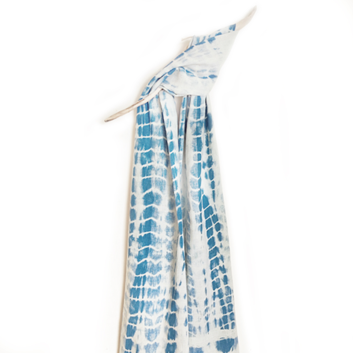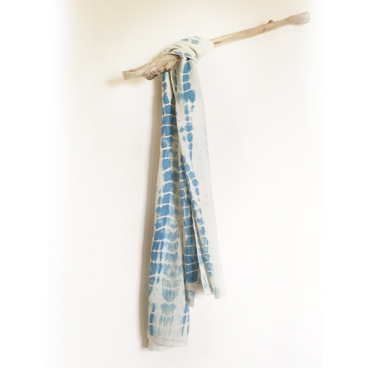 Cette étole associe des motifs de shibori à des nuances élégantes de bleu et d’écru. Chaque pièce célèbre l’authenticité et le savoir-faire traditionnel, tout en offrant une touche de distinction à votre garde-robe.